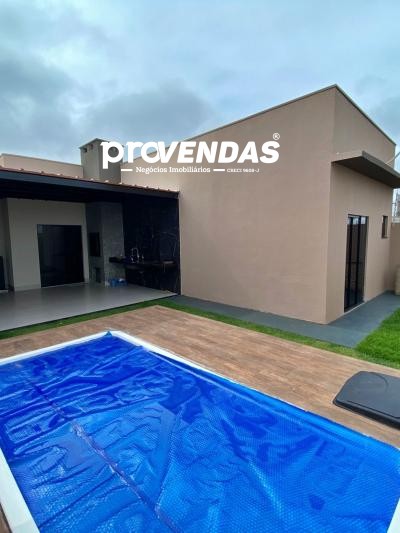 Imóvel dispõe de 03 quartos sendo 01 suíte, sala de estar e cozinha integradas , banheiro social, lavanderia, área gourmet com churrasqueira, e piscina, garagem coberta para até 02 veículos.